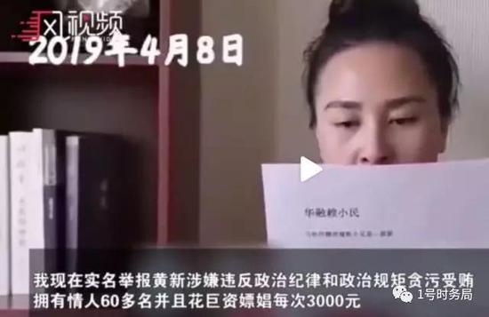 據媒體報道,在4月8日的視頻舉報之前,萬莉莉也曾在3月中旬在網絡上對黃新公開舉報。
