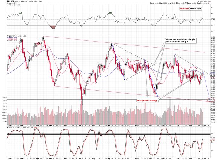 Radomski認為,從基本面來看,美聯儲的態度以及貿易戰帶來的不確定性對黃金有支撐,對白銀也同樣如此,但白銀的走勢出現了一些變化。